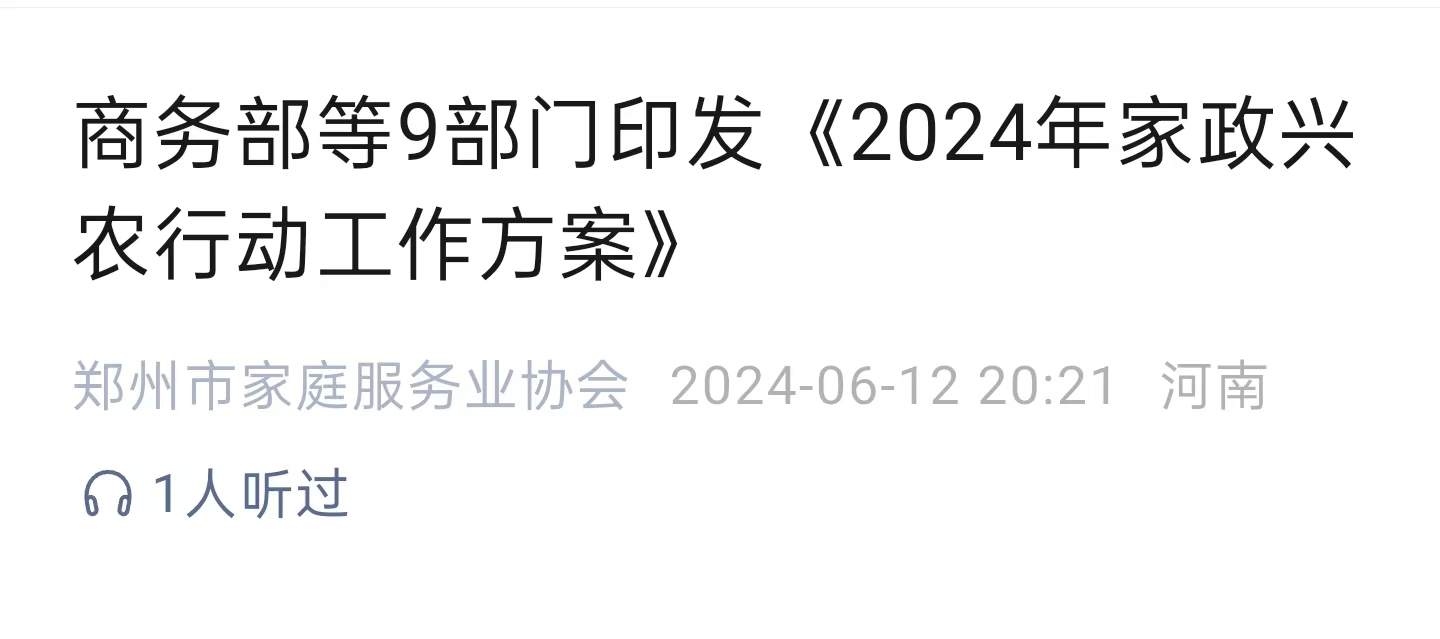 商务部等9部门印发(2024年家政兴农行动工作方案)