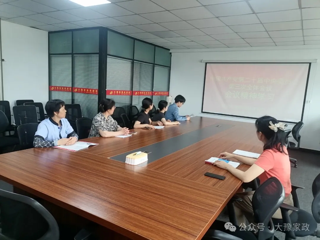 7月29日上午,河南大豫家政服务有限公司组织开展了学习贯彻党的二十届三中全会精神的系列活动,掀起了一股学习热潮。