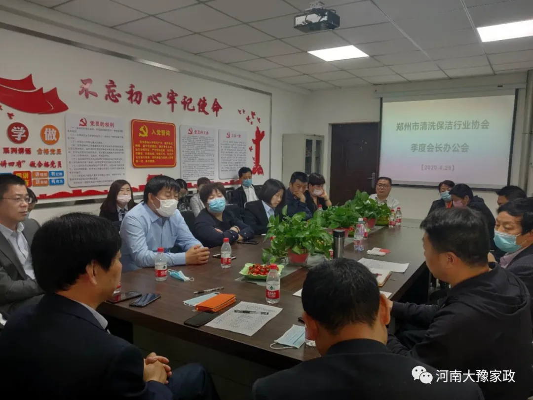 2020年4月29日下午,郑州市清洗保洁行业协会第一季度会长办公会在河南大豫家政总部会议室举行。