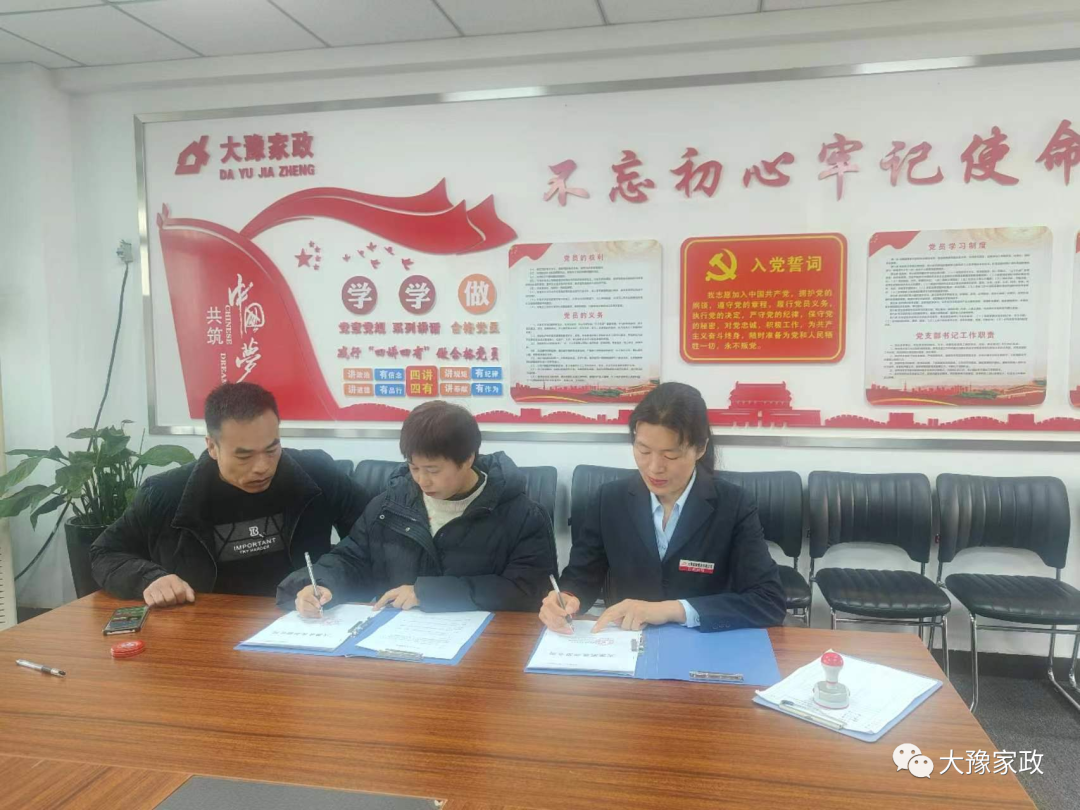 2023年11月13日上午,许昌市襄城县赵晓桃女士来河南大豫家政服务有限公司签订加盟合同。