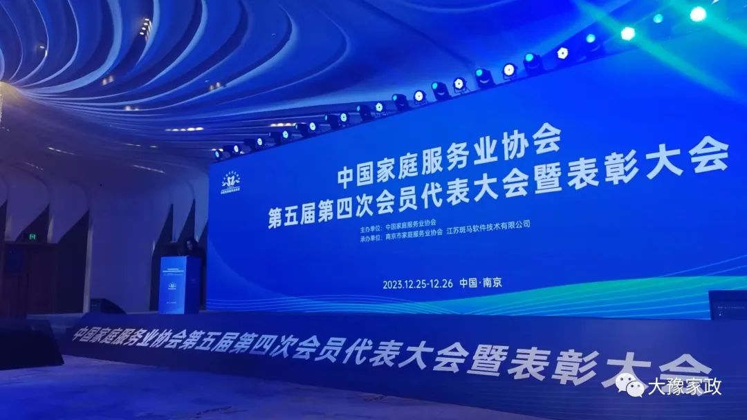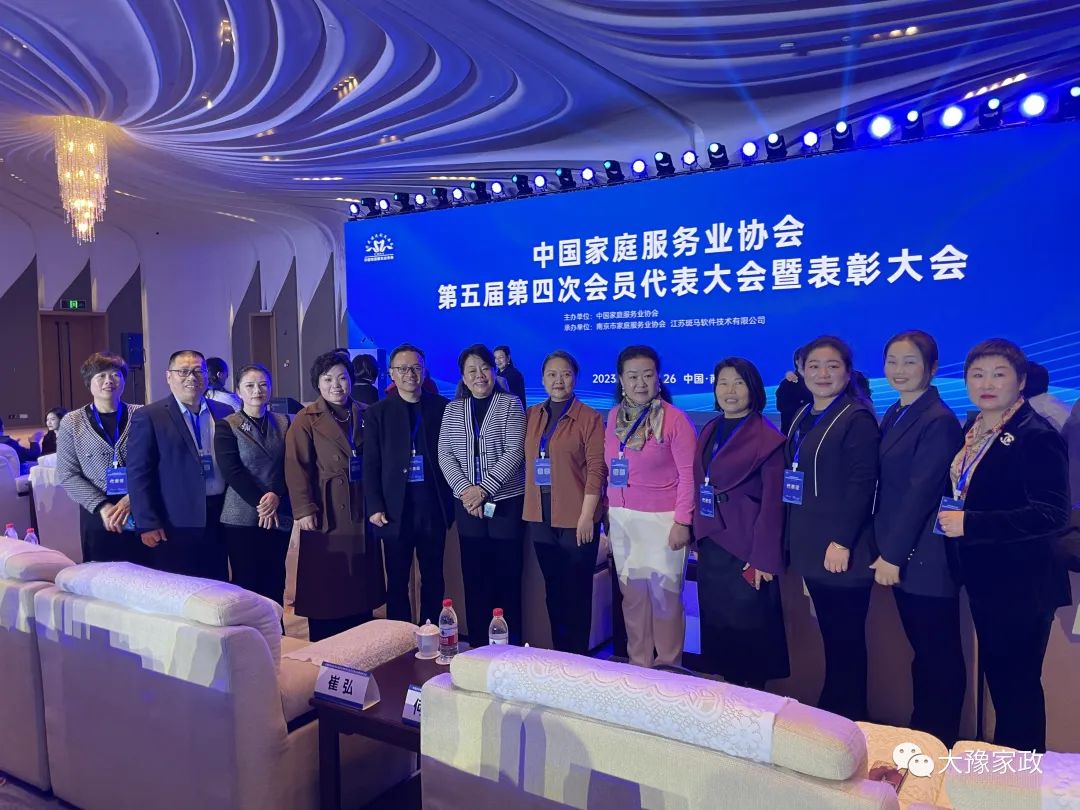 2023年12月26日,中国家庭服务业协会第五届第四次会员代表大会在江苏省南京市国际青年会议中心举行,参会的主要领导有中国家庭服务业协会会长王淑霞、河南省家庭服务业协会执行会长郑州市家庭服务业协会会长王瑜、还有部分河南的家政企业。