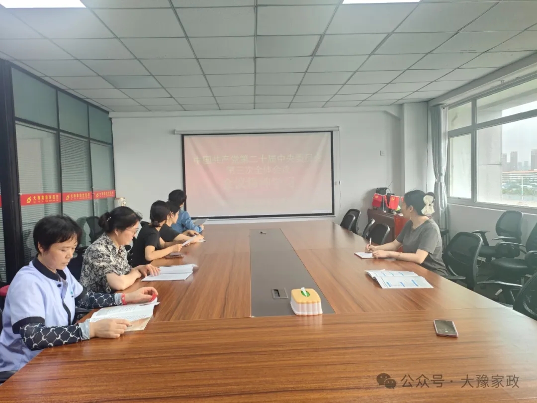 党的二十届三中全会胜利闭幕后,大豫家政高度重视,迅速行动。组织员工学习,深入研读全会精神,深刻领会进一步全面深化改革、推进中国式现代化的重大意义和总体要求。